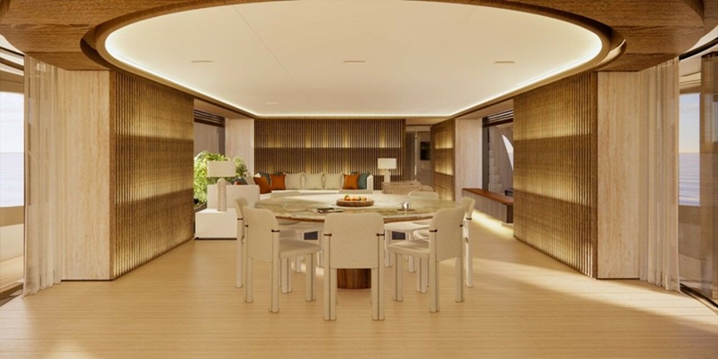 The latest iteration of the Benetti Oasis model has been unveiled. There is now a 42-meter variant and the first hull is currently under construction for a client delivery in 2027. In terms of design, it is by RWD with the interior by the usual Bonetti/Kozerski.