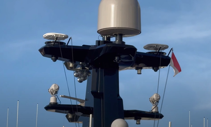 The domes are off the mast...As far as I remember she used to have 4 domes at the top of the mast. There is only one remaining now. It looks like she has two flat dishes for LEO communication. Not sure if they are Starlink? because they don't quite look like the same ones you see currently.