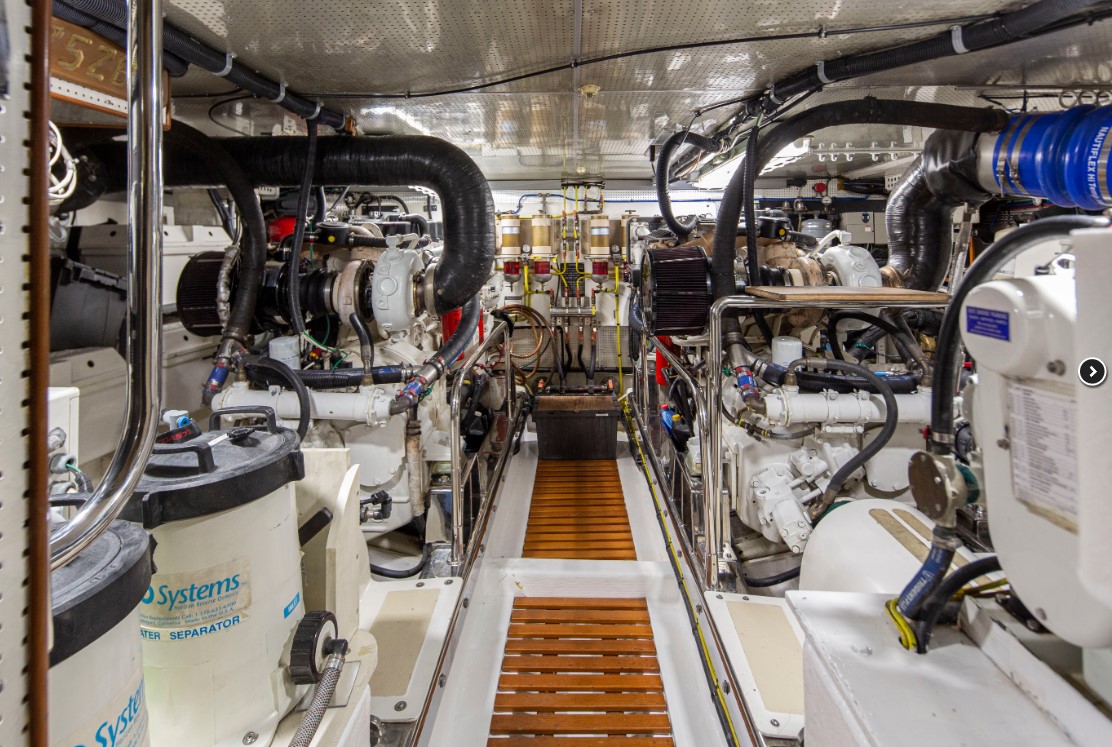 Where are the generators? The early 2000's Marlow I ran had them mounted outboard of the engines. Of course it had stand up engine room height, but the engine room length from bow to stern was short and there was minimal crew cabin. Marlow put all that space up into the cabins where he 'beat the competition'. Of course years later there was a decision on that boat to replace the generators. I asked the next captain how they did it with them being outboard of the engines. He said they stripped them to the block and got them out of the boat with lots of effort. The new ones were installed by stripping them to the block and reassembling them in the engine room. Cost a fortune and the new generator warranty was crumpled up and tossed in a garbage can.