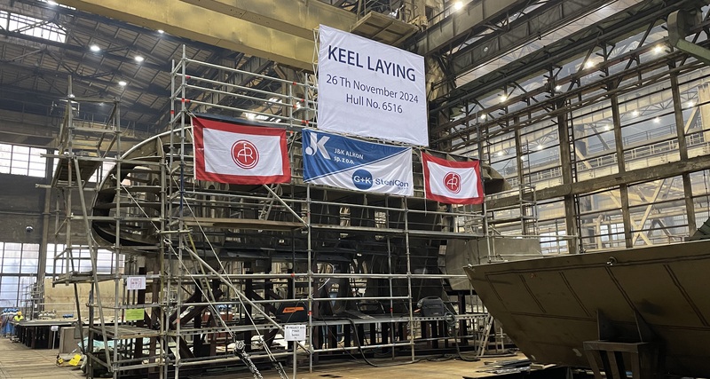 7. 6516 is also in the works from German custom superyacht builder Abeking & Rasmussen. This is a 79.95-meter build on course for delivery in 2027. Her keel was laid towards the end of November 2024. She will be quite voluminous with an estimated internal volume of 2,999 GT. With a full-displacement steel hull and aluminium superstructure the yacht is to have an interior by a UK firm. Her builder has not publicized alot of information about this particular construction and as a result we will have to wait until 2027 for her to reveal her self to the world.