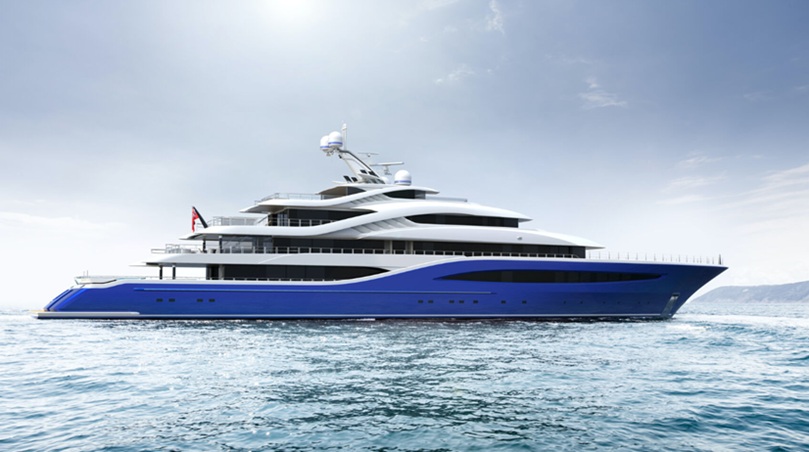 3. Turquoise has several yachts under construction at present. One of them is the 87-meter Project Vento. This one is in build and expected to be delivered in 2026. She has a design that was penned by H2 Yacht Design. She has a 13-meter beam and a bold blue finished colour on the hull. In fact that colour is bespoke one that maybe familiar to you as it is associated with the Ferrari race track and called 'Tour de France Blue'. This aspect was a distinct owner request.