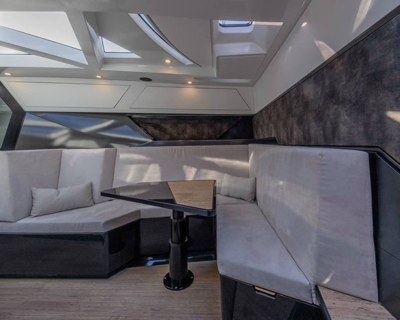4. The glass-like covering on the foredeck not only cleverly incorporates a 'Y' in the design but it serves practical purpose of naturally lighting the forward lower deck. That area below comprises of the V-berth, dinette, Head area, general storage and drinks/wine cooler storage. The SAY 52 can comfortably take guests on weekend jaunts with ease. The €2,000,000 vessel is a very light boat for its size reportedly weighing 7.5-tonnes using half as much fuel as its competition. With 1,200 LT of fuel the vessel can easily handle weekend getaways within 300 nautical miles. Top speed is around the 45-knot mark.