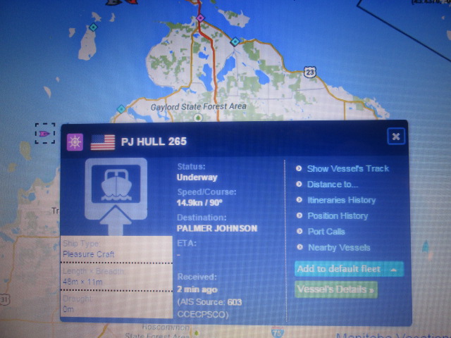 My last trip is a 66' Hattteras M/Y left Detroit at 07:00 this morning, but is wind bound upper end of Lake Erie as the winds today are 30 knots out of the west 8' to 10' waves. Thursday morning winds will be NW 10-11 knots.