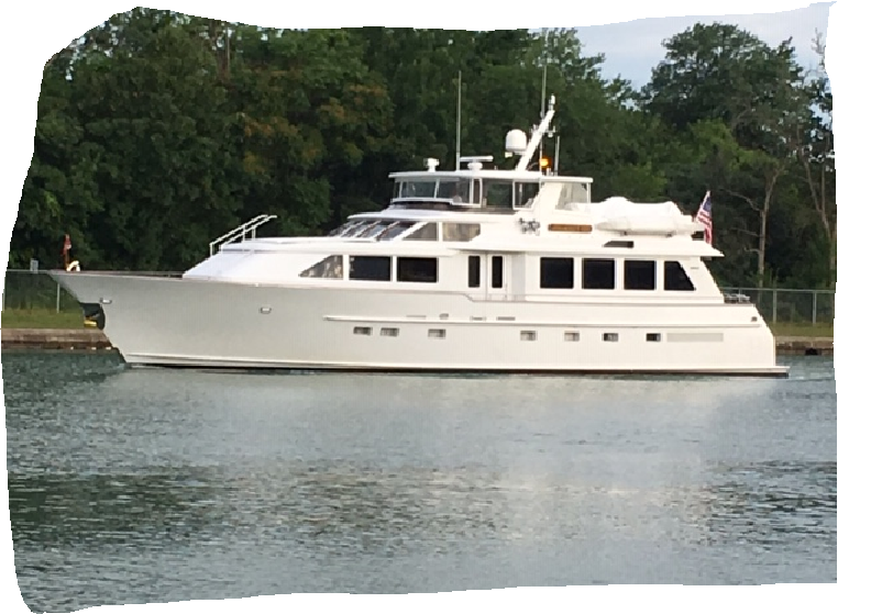 This looks to be the old "Windrush" built in '91 or so by a serial Broward owner that wanted to help revive Burger after the Mac million / Tacoma Shipbuilding debacle. You can see a lot of Broward styling in this build such as the double entry on the companionway ,the radar arch and the faired in half round reveals on the fashion boards & fwd. cabin trunk etc.. This boat received a lot of press @ FLIBS that year