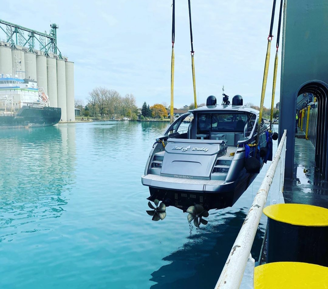 It was taken in Sarnia. I loaded both boats there on Tuesday morning after the ship was delayed up in Lake Superior due to the heavy winds over last weekend. The Pershing was up in Michigan all summer with the owner and his crew, and I moved it across the river and loaded onto the ship under the CBSA / American Captain rules that are currently in place. The Sea Ray was brought up from Port Clinton, Ohio prior to the ship's arrival and loaded that one first, and then the Pershing. They will be discharging in Port Everglades once the ship leaves Newport, RI and makes her way down the Coast.